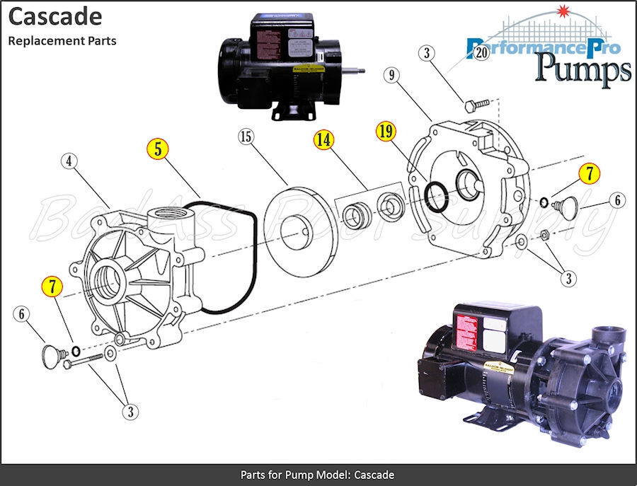 Product Overview Cascade O-Ring Repair-Rebuild Kit with Saltwater Shaft Seal Kit Includes; 5 - Volute O-Ring, PVO-10 19 - Bracket Bore O-Ring, PNO-02 7 - Drain Plug O-Rings (2) 14 - Stainless Shaft Seal, MPS-517
